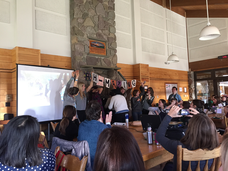 The first night we had “Camp Games”, which were probably exactly what you would think they are; goofy games meant for 6th graders at summer camp. Now picture a bunch of women who just met, walking around a gym acting like robots and saying sheep and boing without showing any teeth, and it basically ended up being a hilarious ice breaker.