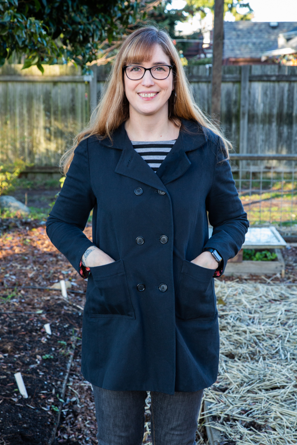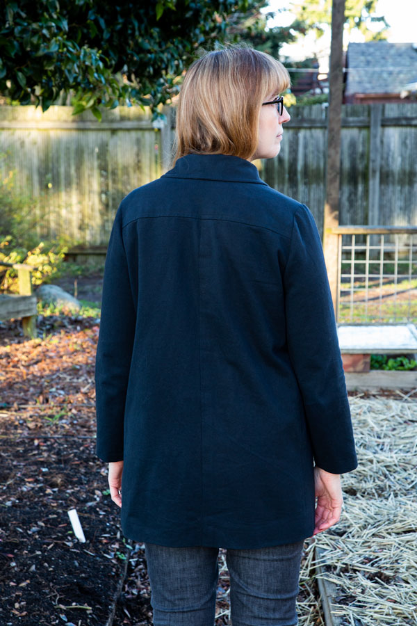 I started this jacket at Camp Workroom Social. Not in 2018, but in 2017. I was so close to completing it at Camp that year. When I got home, all I had left to do was bag the lining and add the buttons, but I was intimidated to do the lining part on my own because I had heard that was the trickiest part. So it sat on my dress form until the following spring. That’s about when the Seattle Sews group started meeting, so I brought it to one of the meet-ups, thinking there would be strength in numbers and that if I got stuck I would at least be around other sewists that could help me figure it out. I was right and after a bit of head scratching, we eventually figured it out.