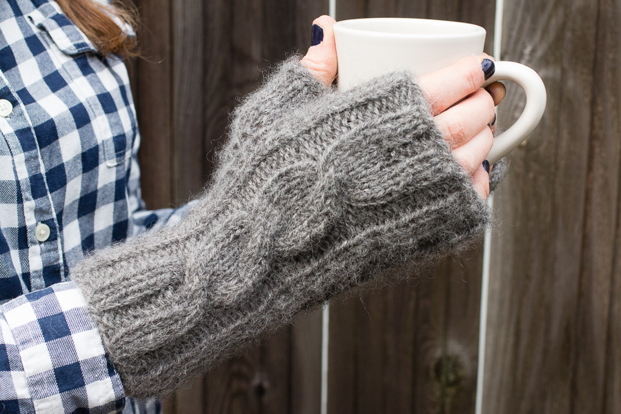 I would think that no one wants to read about hand knit winter wear in the middle of April, if my knitting night wasn’t still packed full of knitters every week. Apparently, knitting is a year round activity. So I won’t apologize for sharing my gray cabled mitts (that I finished in February) with you now.