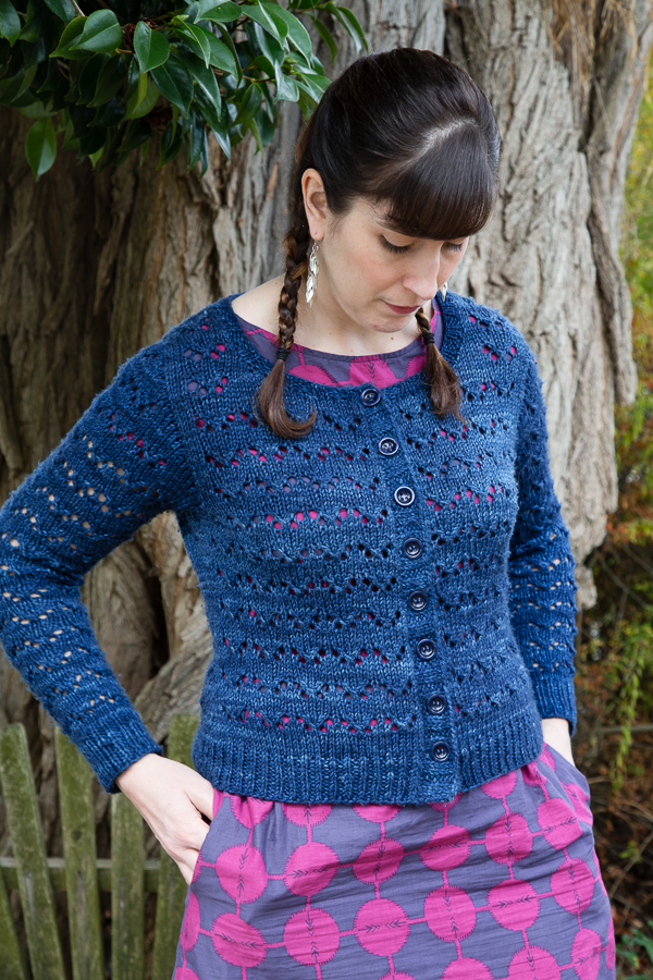 The pattern is the Hetty Cardigan by Andi Satterlund. The lace pattern is similar to the lace on the border of the Miette Cardigan, but shaped a little differently and repeated throughout the sweater, so my Miette was good practice for it.