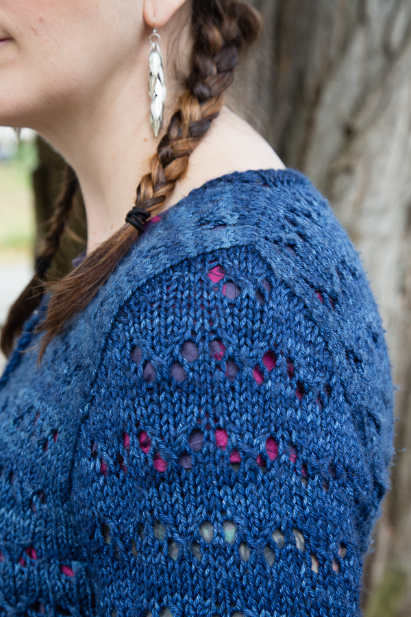 In order for the lace pattern to be centered with the shoulder seam, when picking up the stitches at the armhole, you must have an even number of stitches on each side of the shoulder seam. It doesn’t say that in the instructions and that’s not the sort of thing that is intuitive for me yet, so the lace pattern on the first sleeve I knit is not centered. I almost ripped the whole sleeve out to fix it, but I had already had to rip that sleeve back several times for other mistakes, so I decided to move on. It really doesn’t bother me too much, but I wanted to point it out, so that others can learn from my mistake.