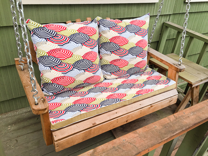 Remember my porch swing from my garden tour post? I finally made the cushions that I’d been wanting make!