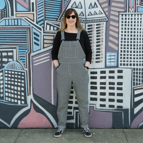 I actually made the bottoms back in October, right before Camp Workroom Social and then wore them for about a month before having time to complete the top (I think I did that with my last pair too). So both the top and bottom have been worn and washed before even taking these photos. I don’t think you can tell or they look bad in these pictures or anything. I guess I am just telling you this so you know that these have been road tested and held up in the wash really well!