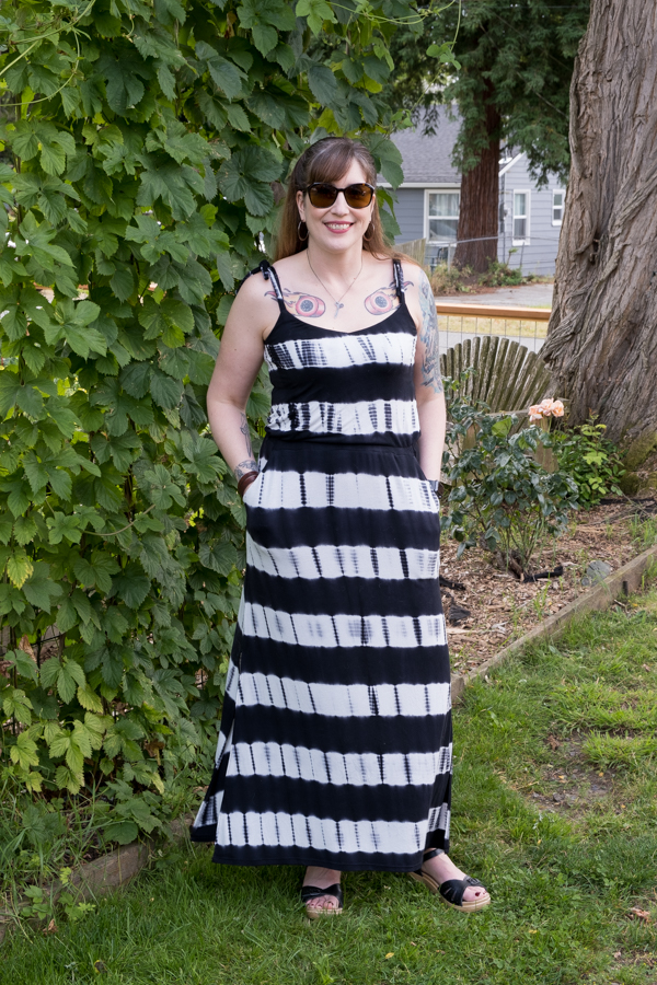 It’s sort of become a tradition for me to sew myself a dress for my birthday. By sort of, I mean I do it about every other year. With a big party out of the question this year, I didn’t even think about sewing a dress until just a few days before my birthday. It just so happened that I had this awesome tie dye knit fabric in my stash (courtesy of @melizzamakes) that was perfect for sewing up a quick Closet Core Patterns Sallie Maxi Dress!