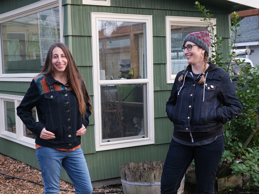 It was fun to sew this with my friend Cara (via Zoom in the middle of a pandemic), but it was ALSO really cool to see how different a pattern can look when sewn with different fabrics and threads. I love the way Cara used a Pendelton-esque fabric for the yoke of her jacket and turquoise thread for the topstitching.