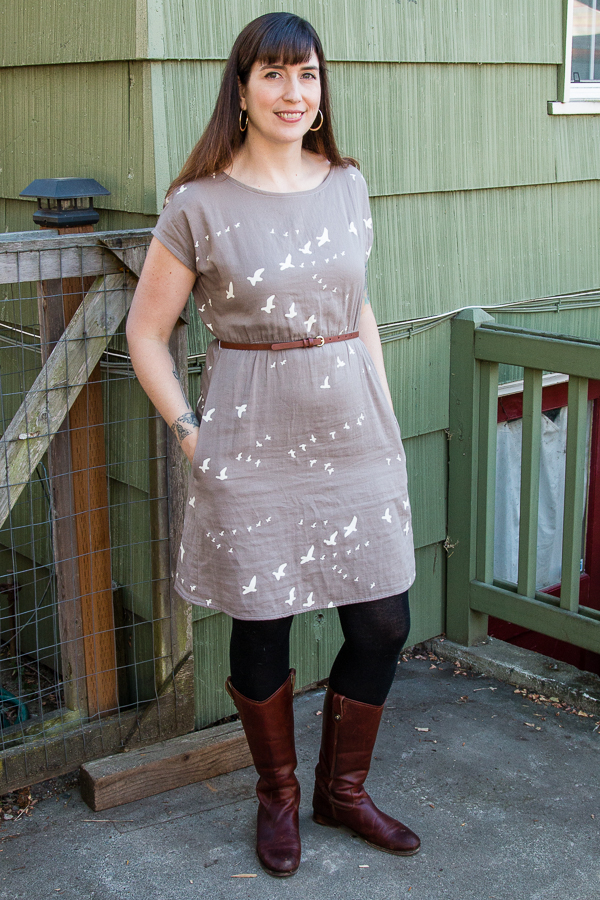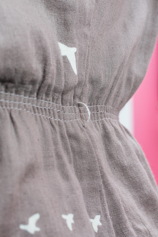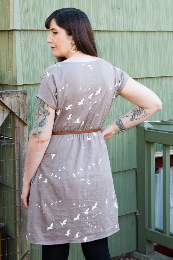 I’m not sure if the other bird print versions were also double gauze, because the double gauze was not so awesome for this pattern. I used a cotton lawn for my first Staple dress and this pattern is really meant for lighter weight fabrics. The heavier weight double gauze just didn’t drape as well or take to the shirring very well. It just seemed like so much fabric, so I ended up taking in the sides and shortening it.