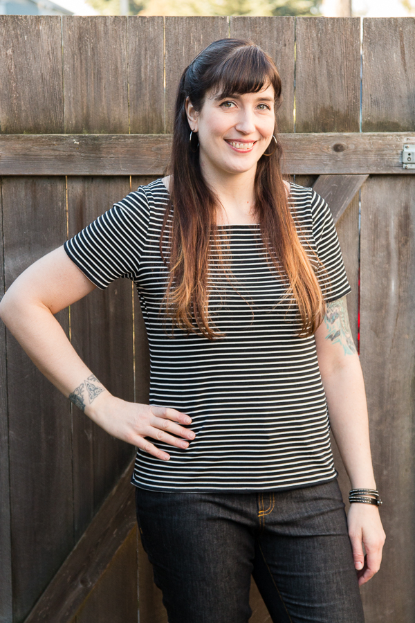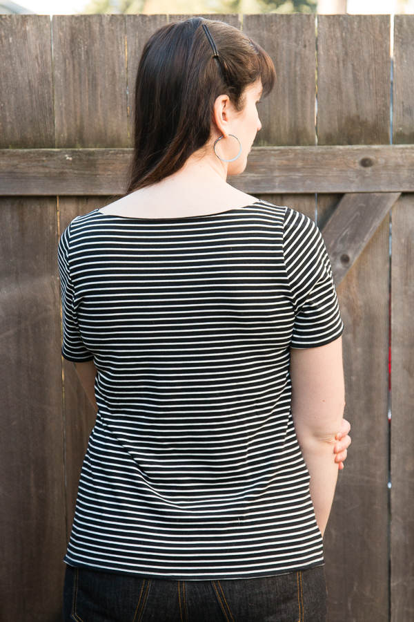 I love this fabric, it is just the right weight and is so soft! Black and white stripes are so classic and with the boatneck creates a fun nautical look.