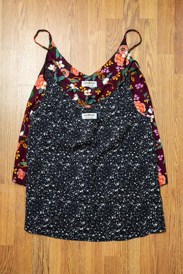 I had fabric set aside for two Ogden Camis: some leftover Rifle Paper Co. Cotton and Steel rayon (from my Ellsworth Coat) and a beautiful Splatter Print Workroom Social Miramar Rayon. I didn’t expect that I would sew them back to back like I did. Turns out this is a really quick sew and I was about to go on vacation somewhere warm, so the time was right.
